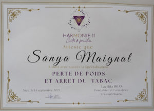 J’ai choisi de mettre l’humain au cœur de ma vie. J’accompagne chacun vers plus de sérénité, d’équilibre et de confiance. Spécialisée en gestion du stress, sommeil, perte de poids et arrêt du tabac.